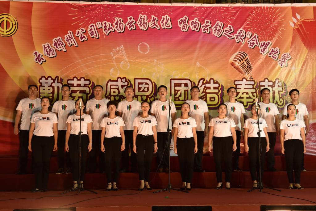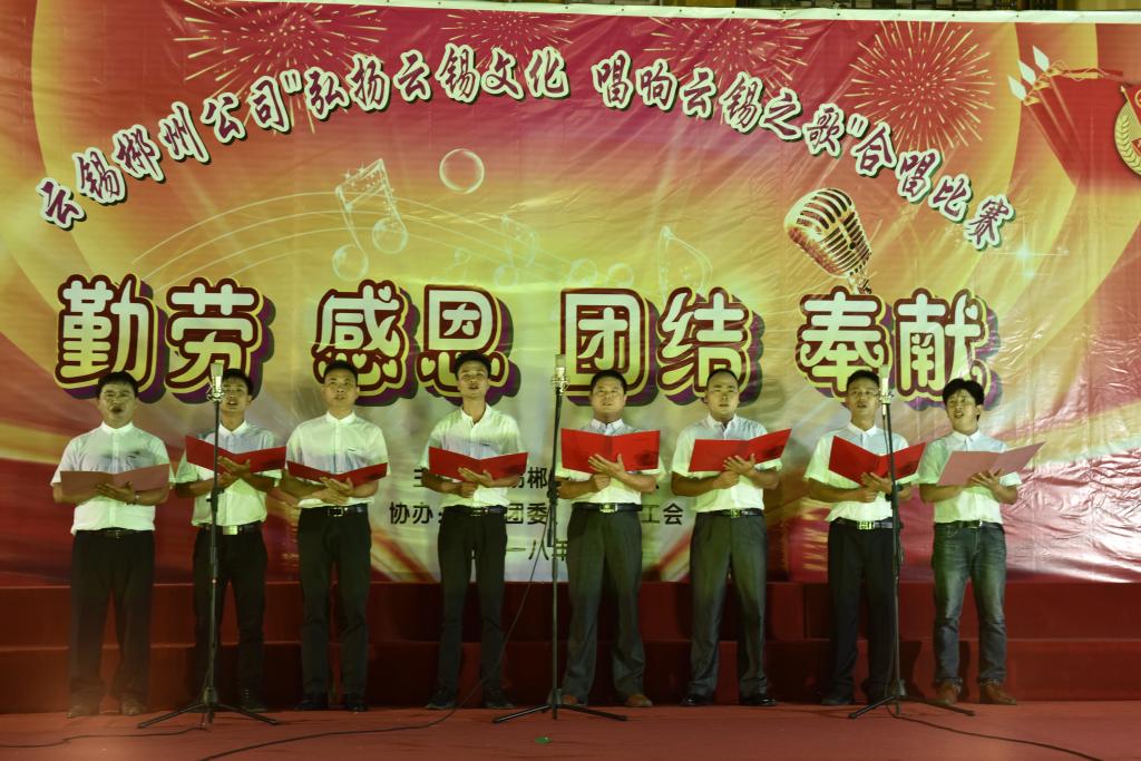 文藝演出在《咱們工人有力量》的齊唱聲中拉開序幕,屋場坪錫礦、總部機關(guān)、高新材料分公司和云湘公司4個合唱隊以整齊的陣容、昂揚向上的精神風(fēng)貌投入到演出中。《永遠拼搏在一起》《中國中國,鮮紅的太陽永不落》《云錫明天更輝煌》《世紀(jì)星光》等12首歌曲,充分展示了各個單位、各個崗位上員工的精神風(fēng)貌,謳歌黨的輝煌歷程和豐功偉績,激發(fā)了廣大干部員工愛國、愛黨、愛企業(yè)的熱情。號召大家以主人翁姿態(tài)積極投身郴州公司“改革突破、持續(xù)扭虧、轉(zhuǎn)型發(fā)展”工作主線中,為企業(yè)生產(chǎn)經(jīng)營良好勢頭和轉(zhuǎn)型發(fā)展再打硬仗、再破堅冰。