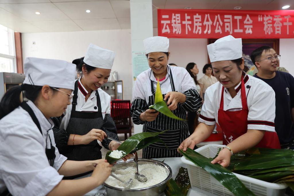 卡房分公司開(kāi)展“粽香千里 情系卡房”端午節(jié)比賽活動(dòng)。隨著計(jì)時(shí)口令的發(fā)出,大家雙手靈巧地舞動(dòng)著,將糯米、粽葉巧妙地組合成一個(gè)個(gè)精致的粽子,在一場(chǎng)充滿(mǎn)激情的無(wú)聲較量中增進(jìn)交流互動(dòng)。