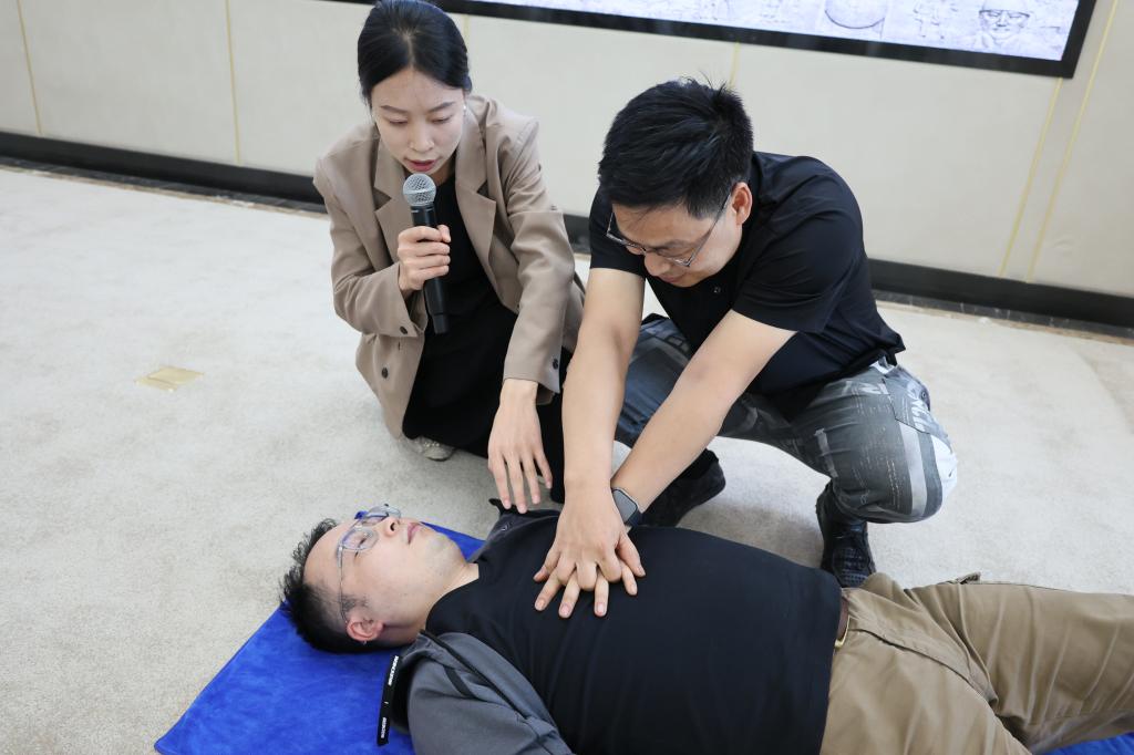 職工積極踴躍參與模擬演練,在邊學(xué)習(xí)邊實(shí)踐的過程中全方位、立體式感受和掌握急救要領(lǐng)。