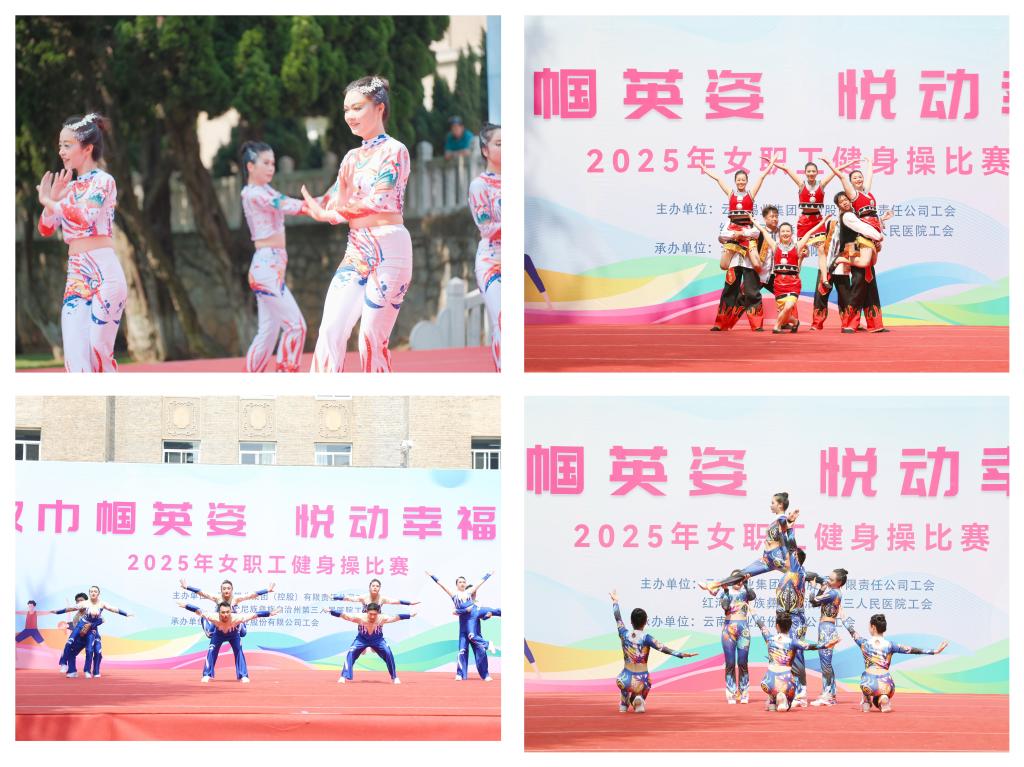 賽事設(shè)置民族健身操規(guī)定套路《同心共筑中國夢》及自編有氧健身操兩大項目。各參賽隊伍身著統(tǒng)一服裝,精神抖擻,依次登臺亮相。在第一輪規(guī)定套路比賽中,各隊把動感十足的現(xiàn)代健身操與民族特色元素融合創(chuàng)意編排。伴隨著歡快的音樂節(jié)奏,選手們伸展、跳躍、旋轉(zhuǎn),動作流暢自然,充滿力量感與節(jié)奏感,用靈動的舞姿和自信的笑容,詮釋著對健身操運(yùn)動的熱愛,展現(xiàn)廣大云錫女職工積極向上、團(tuán)結(jié)協(xié)作的精神風(fēng)貌,充分詮釋巾幗風(fēng)采與健康云錫的主題內(nèi)涵。